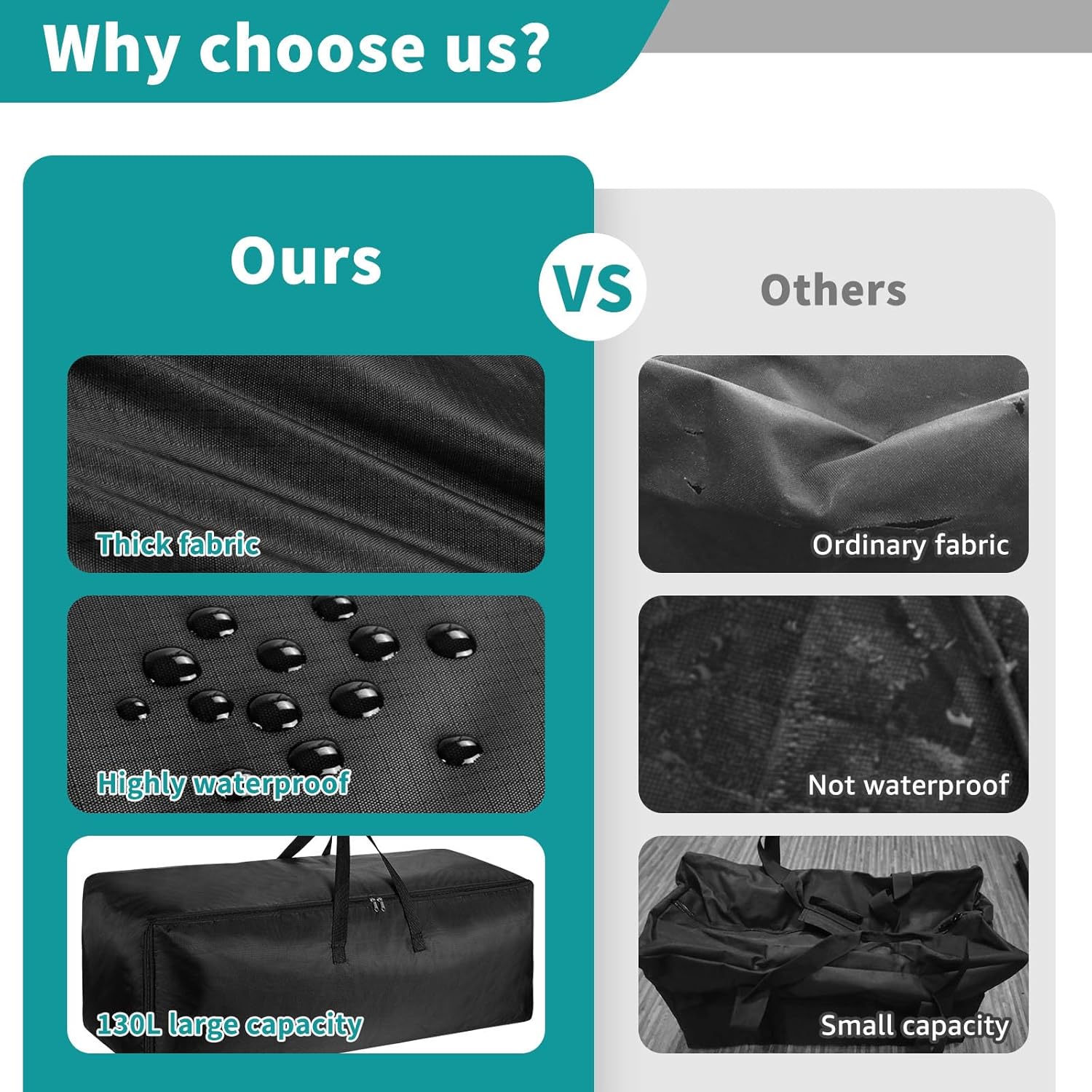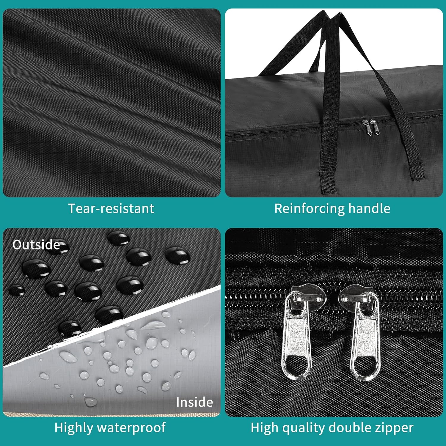 Reinforcing Handle: This outdoor cushion storage bag has strong handles on top to move the bag easily while carrying the stuff, providing safety and convenience for you.