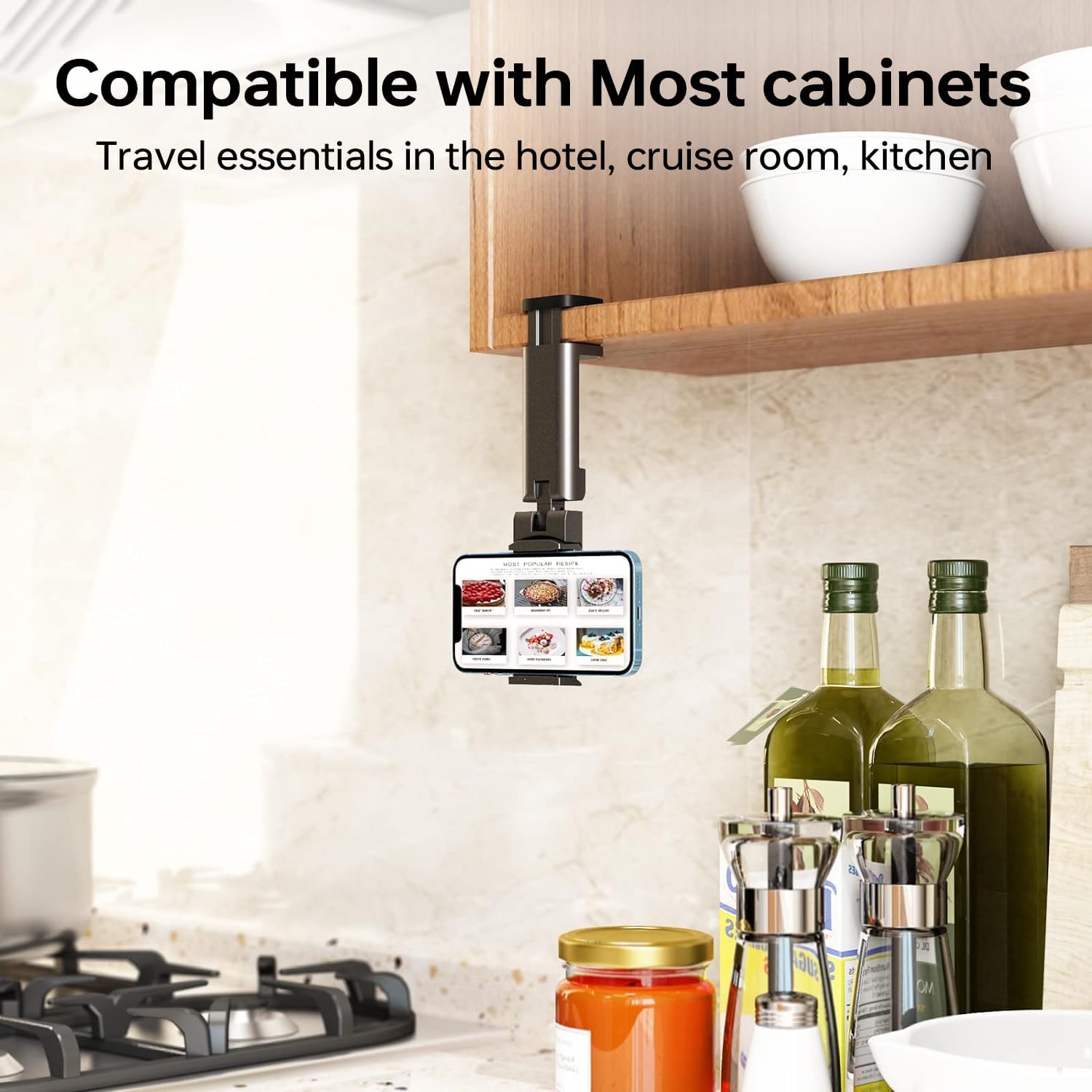 Hands-free Convenience: keep your phone within reach and in sight, whether you’re on a plane or at your desk. You can mount it to table tray, luggage handle, desktop, bed, kitchen cabinet, shelf, chair, etc. to release your hands from the phone. With folding and compact design, you can carry it anywhere.