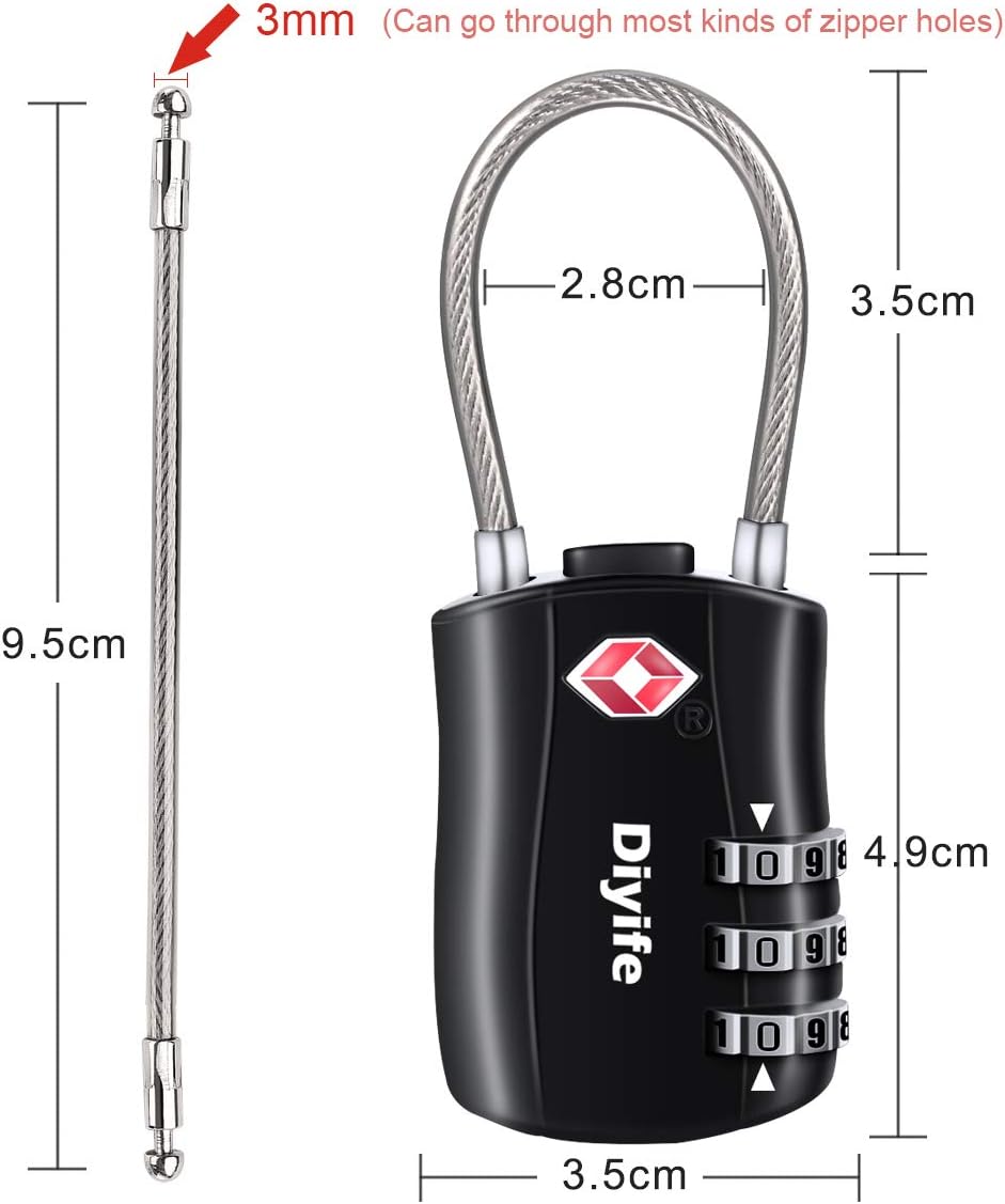 ![Diyife TSA Luggage Locks, [2 Pack] 3-Digit Security Suitcase Locks, Combination Padlock for Suitcases Flexible Cable Travel Lock, TSA Approved Luggage Locks for Suitcases Travel Luggage Bag Case - Image 7](https://travelhuh.com/wp-content/uploads/2026/01/71x7XCqzsGL._AC_SL1500_.jpg)