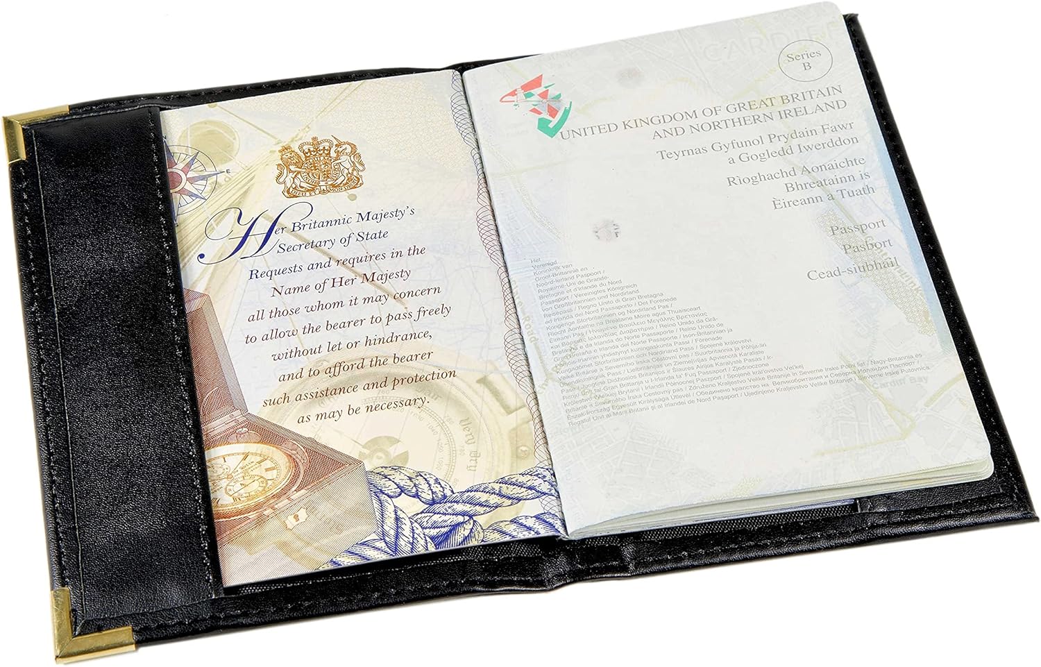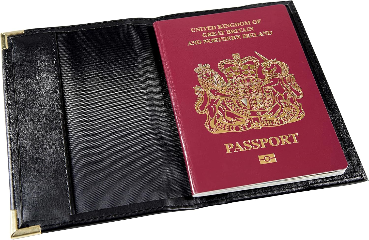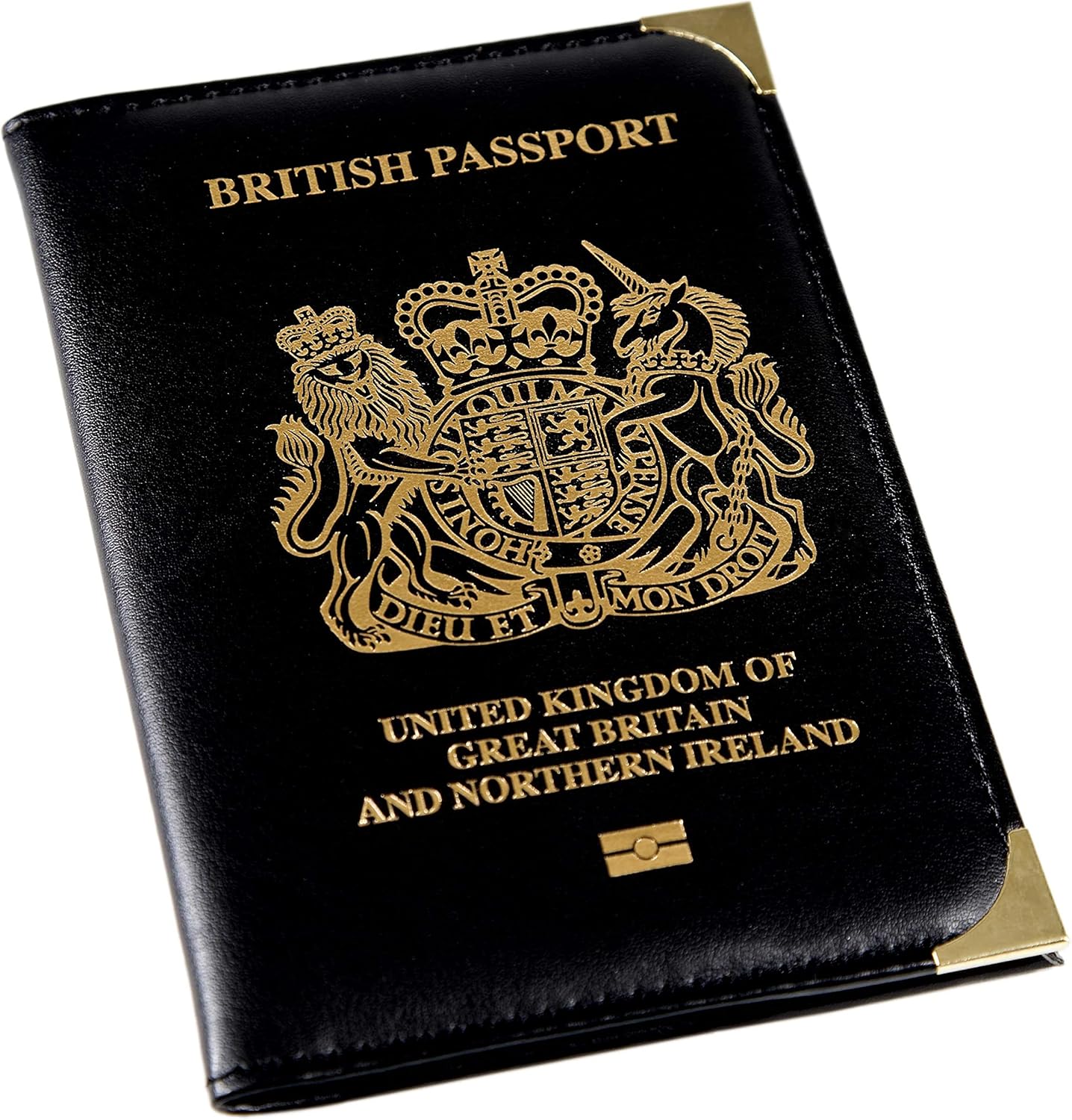 Esposti British Passport Holder | UK Passport Wallet | UK Passport Cover | Non EU | Premium PU Leather | Gold Protective Corners | Black