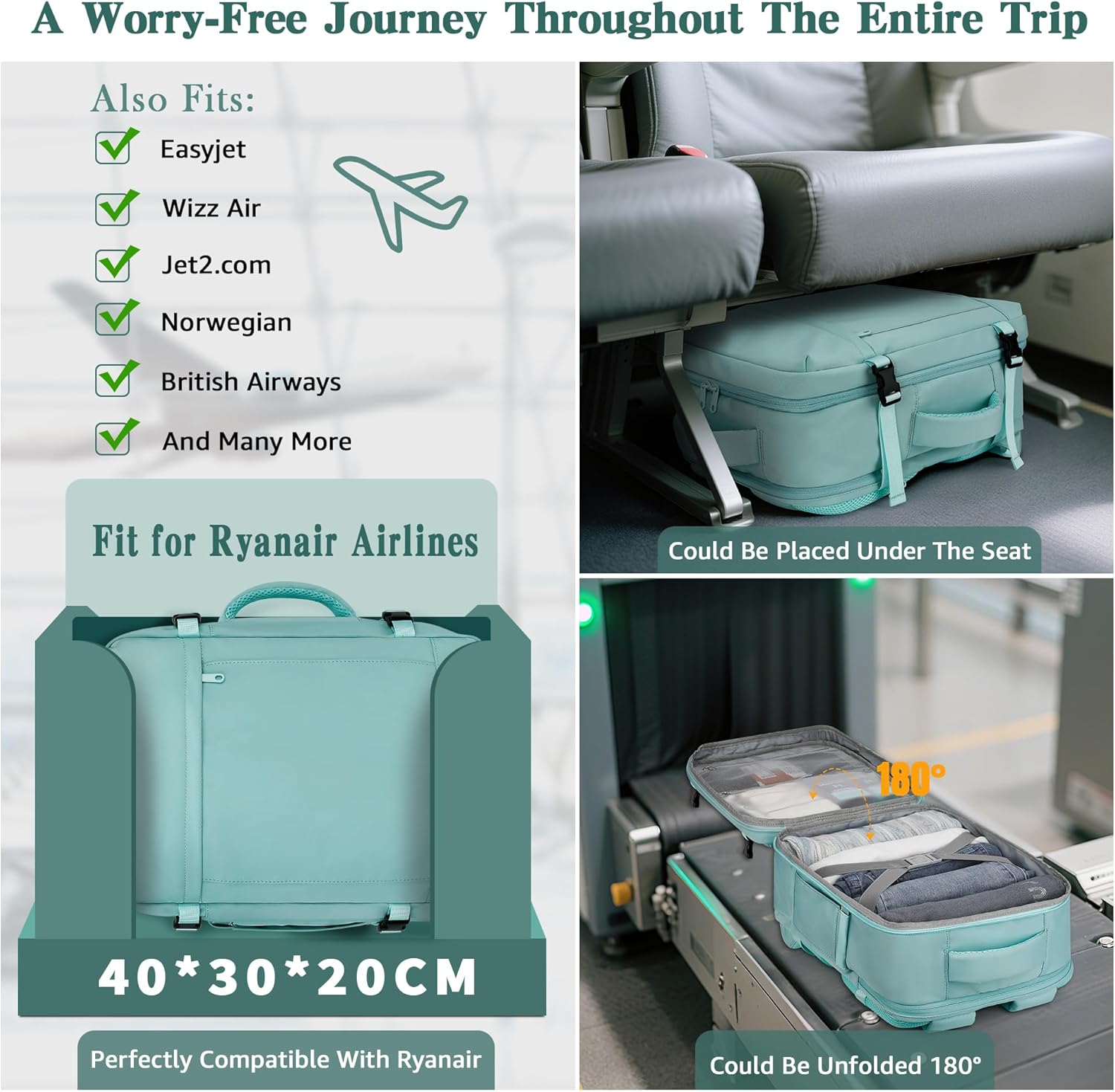 𝟒𝟎𝐱𝟑𝟎𝐱𝟐𝟎 𝐂𝐚𝐛𝐢𝐧 𝐁𝐚𝐠:Our ryanair cabin bag checks Ryanair’s latest size box 40x30x20—and crushes the old 40x20x25 limit with 20% extra space! That’s room for an extra pair of shoes, a travel pillow, or all your in-flight essentials—no more tossing items to meet strict airline rules