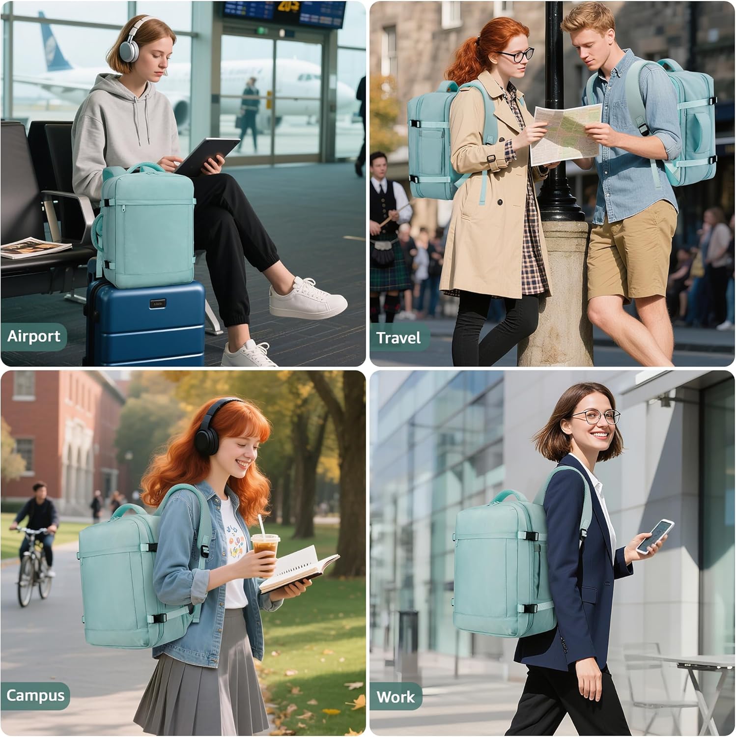 𝐓𝐫𝐚𝐯𝐞𝐥 𝐒𝐦𝐨𝐨𝐭𝐡𝐥𝐲 𝐄𝐯𝐞𝐫𝐲 𝐒𝐭𝐞𝐩:Rest the travel backpack on your suitcase to ease shoulder strain, open it 180° for hassle-free security checks (grab items in seconds!), and tuck it right under airplane seats—your journey stays seamless, from airport to arrival