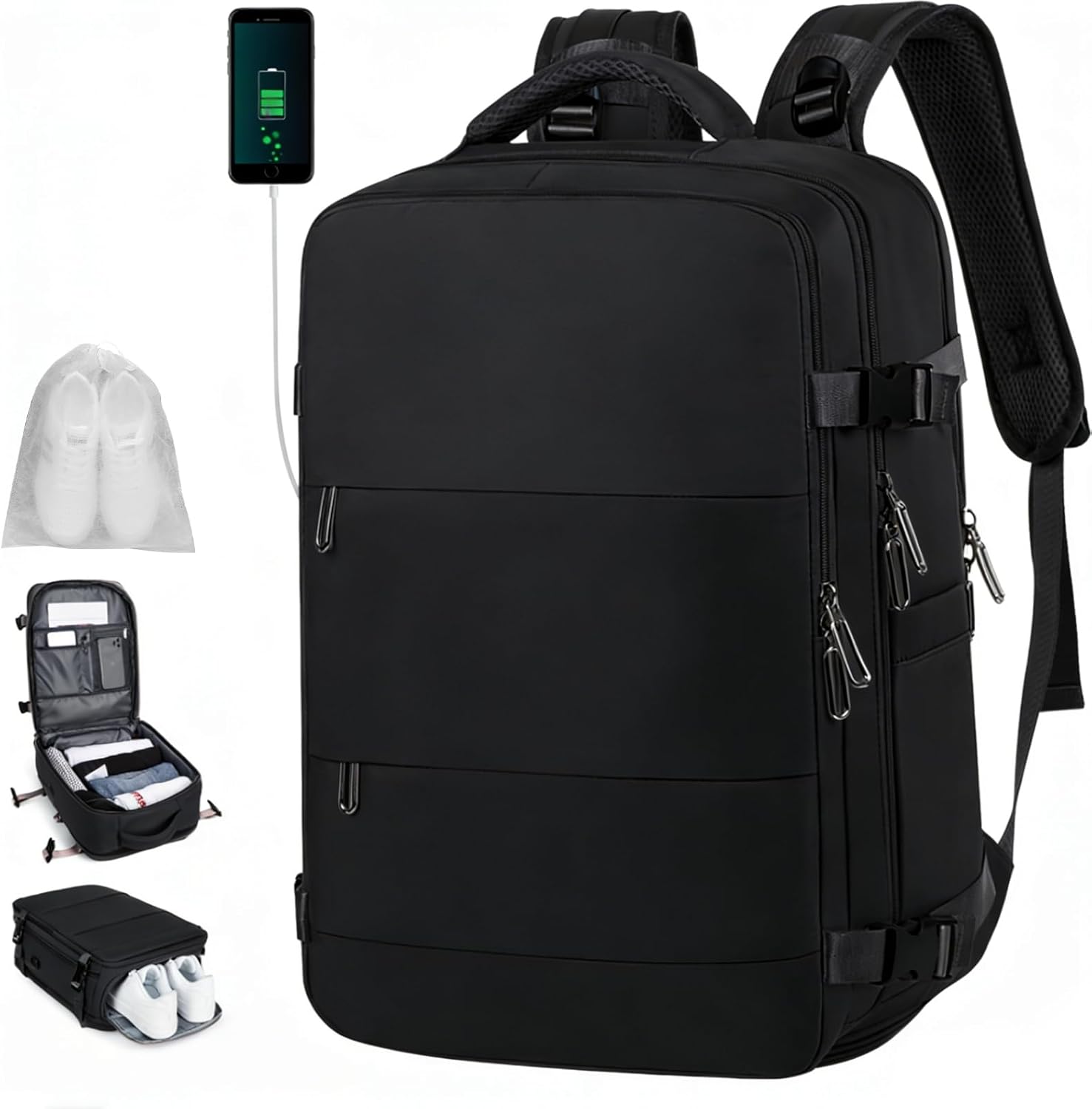 Extra Large Backpack 55L,18.4 Inch Travel Laptop Work Bag with USB Charging Port Big Business Flight Approved TSA Heavy Duty Computer Rucksack for Men Women College School,Black