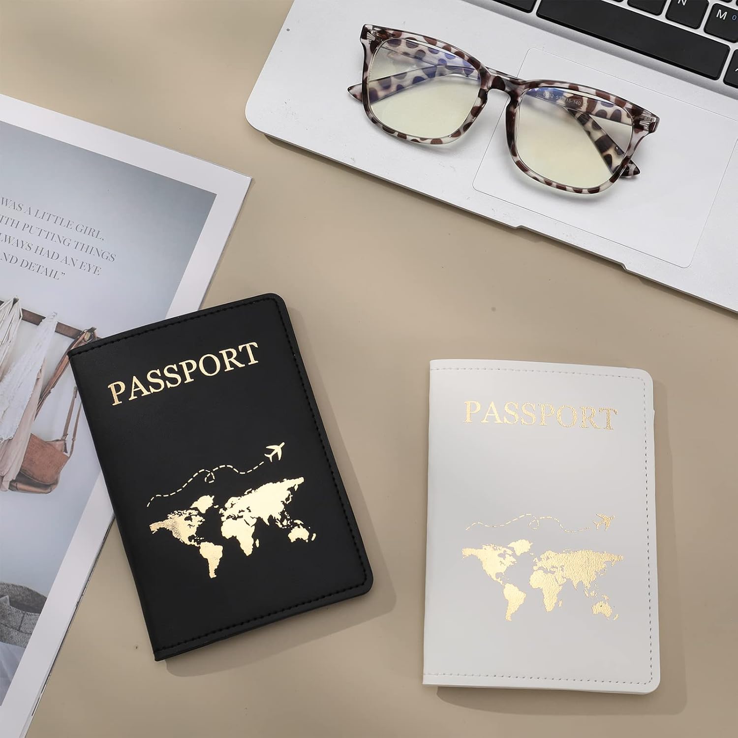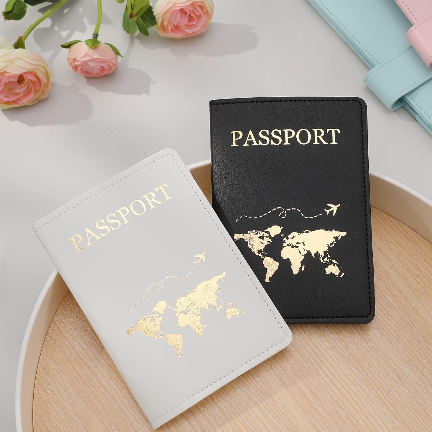 【Ideal Gift Choice】Our passport covers feature a foil stamped design, with a world map and small airplane detailing, perfect as a gift for lovers, couples, families and friends.