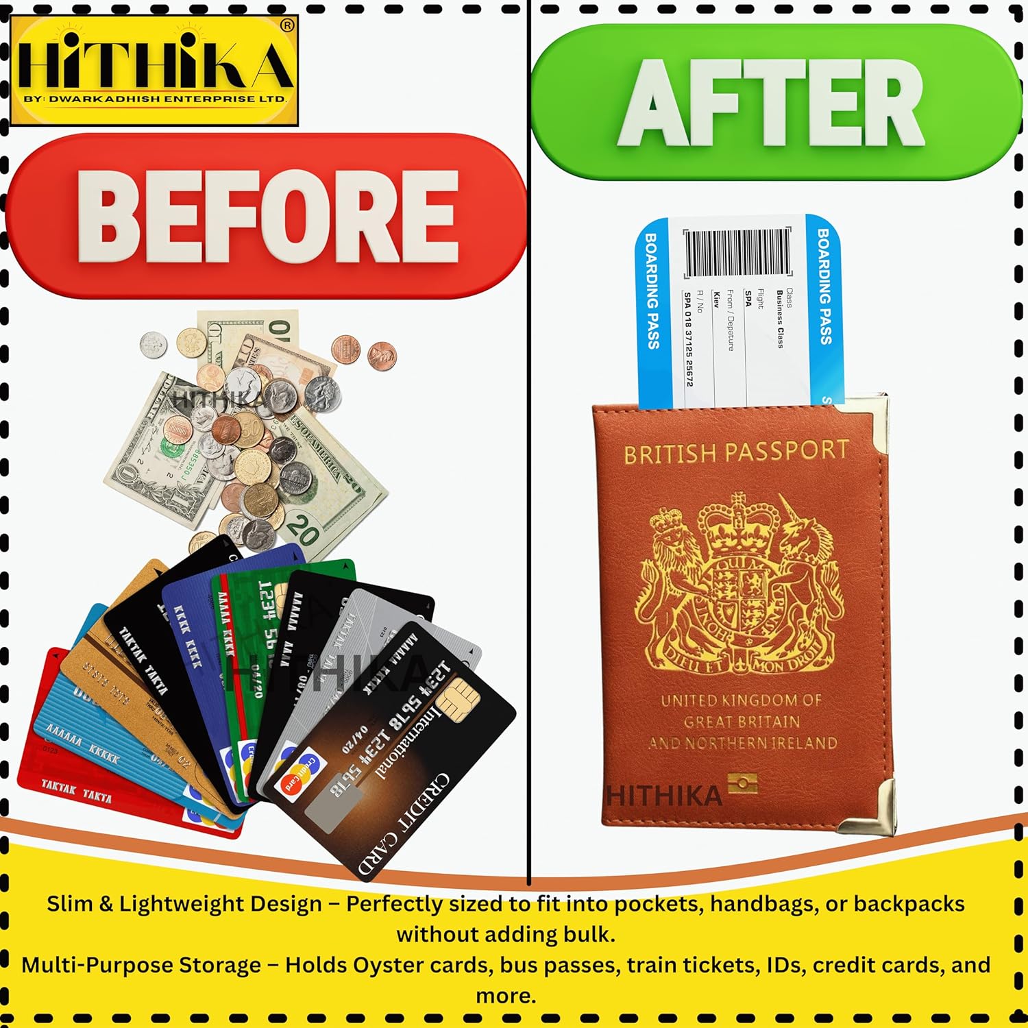 ✅ Secure & Organised – Dedicated slots for passport, boarding passes, ID, and credit cards.