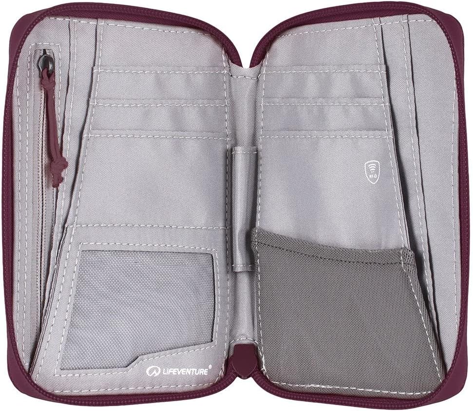 A compact and clever travel companion, the Lifeventure RFiD Protected Mini Travel Wallet is ideal for keeping your travel documents in one organised place. The zip closure is smart and secure for holding all of your items in. The bi-fold wallet shields the contents from radio frequency identification (RFiD) readers by stopping the information being transmitted through the nickel and copper coated polyester-fibre fabric, reducing the risk of identity theft. With a more secure design than a basic trifold wallet, this slim wallet closes securely with a reliable zipper. The RFiD blocker protects your credit cards and ID, and is also a convenient, secure holder for your money, cash, notes, cards, and other items. This small wallet for travel features 7 card pockets, a stash pocket for a smartphone and a passport, a slip pocket for your airline boarding pass, as well as 3 additional stash pockets for other notes and tickets. There’s also a zipped internal pocket for coins and a handy pen loop.The Lifeventure Mini Travel Wallet is made from an innovative waxed canvas fabric constructed from recycled nylon. These sustainable materials have an environmental advantage, but are also durable and stylish for men, women, and teens. Choose your colour from the Lifeventure range. Easy to store in a pocket, purse, backpack, or bag for holiday, business travel, gap years and more. Great for students, travellers, adventurers, and families.