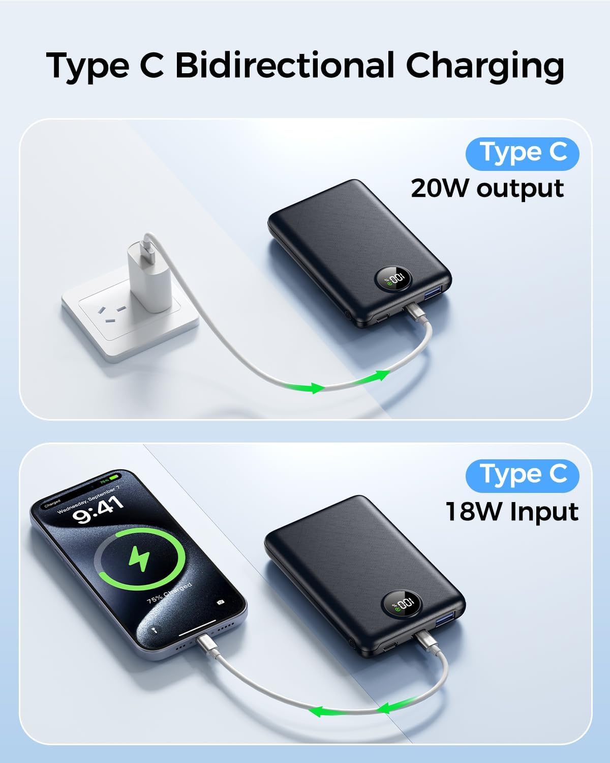 Smart Digital Display: Our mini power bank’s smart LCD display. real-time power monitoring your current battery level as well as input/output status; take the guesswork out and know exactly when it’s time to charge