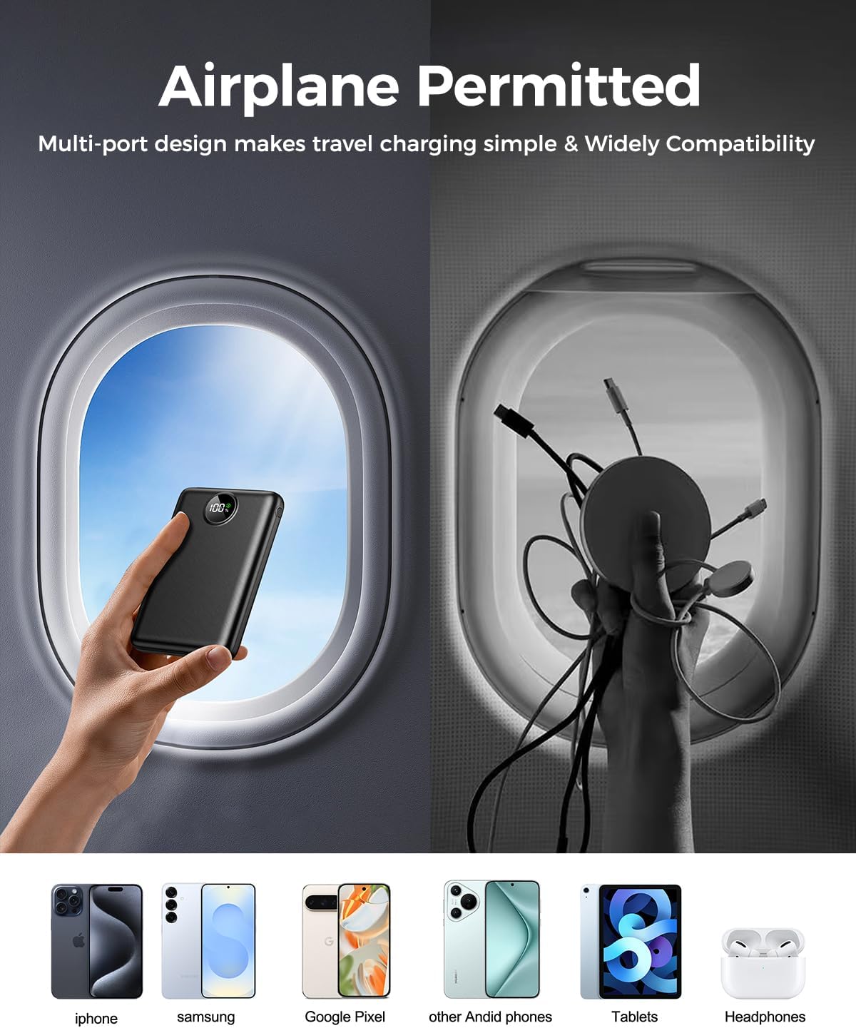 12-Point Safety Protection: Charge with Confidence, built with premium lithium-polymer battery cells, it passes 12 safety certifications including overcharge, overcurrent, overvoltage, short-circuit, and over-discharge protection. Fully compatible with PD3.0/QC3.0/AFC/FCP fast-charging protocols, supporting 3,000+ devices like iPhone, Huawei, and Samsung for guaranteed safe charging.