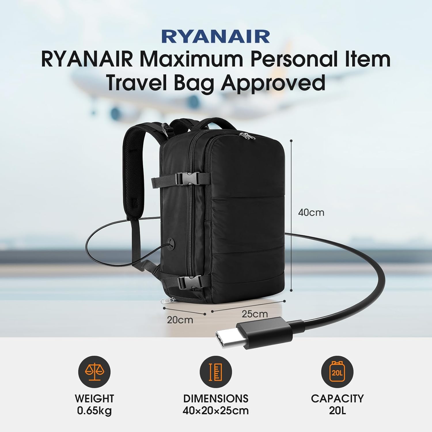 Cabin-approved carry-on: This 20L hand luggage backpack fits Ryanair’s maximum personal item size and a whopping 94% of global hand luggage gauges, including favorites like EasyJet, Eurowings, Vueling, Norwegian, Virgin, BA, Lufthansa, Jet2, Wizz Air, Iberia, Lingus, Delta, American, Emirates, and many more!