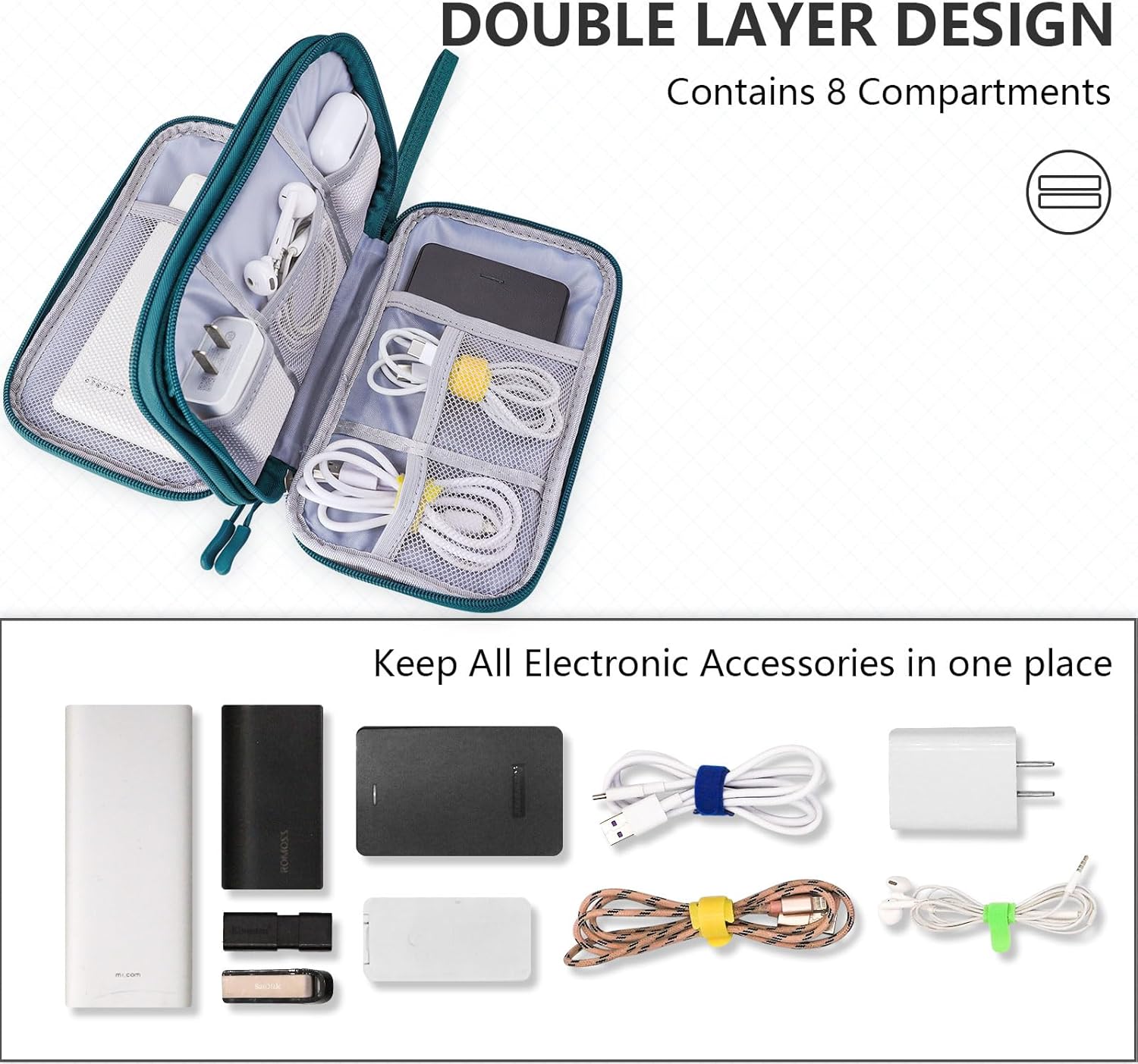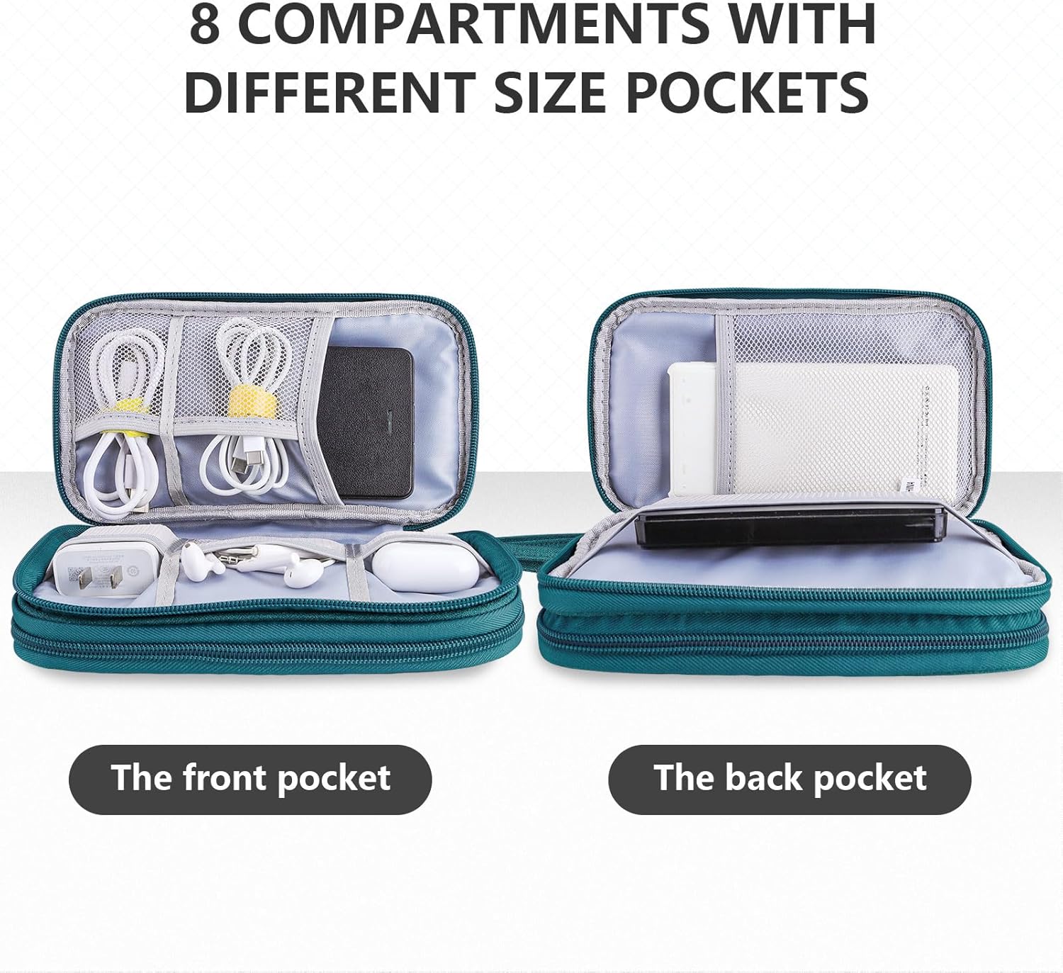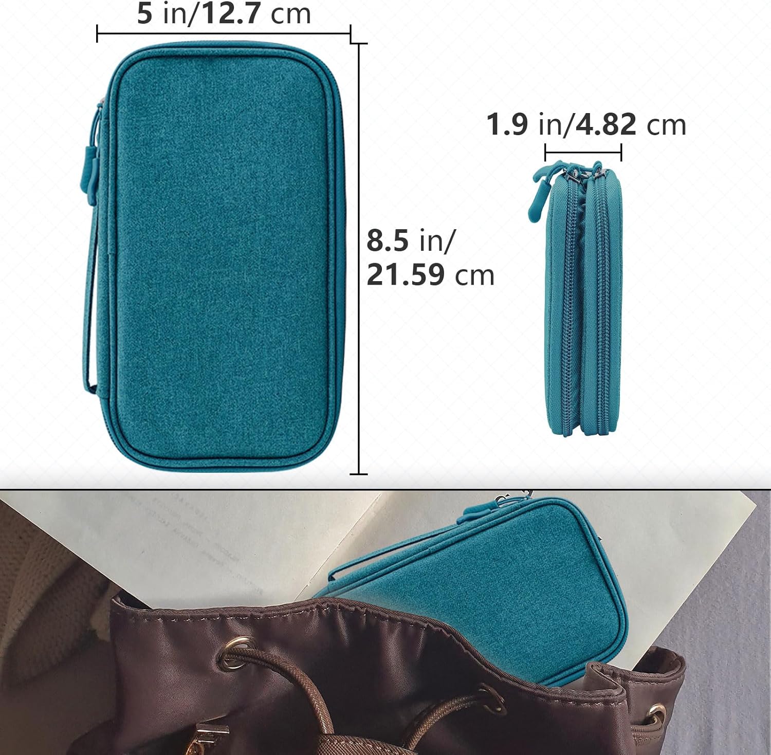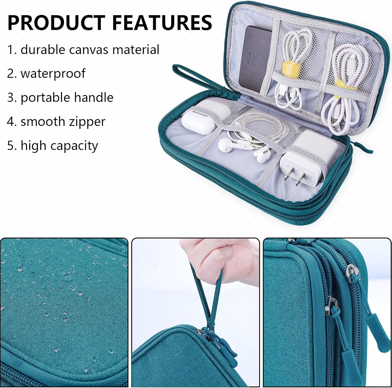 Teskyer Travel Organiser Bag, Waterproof Cable Organiser, Dark Green, 8.5 x 5 Inch