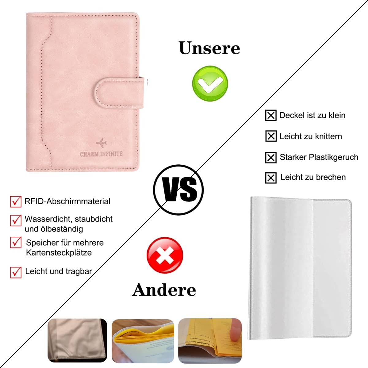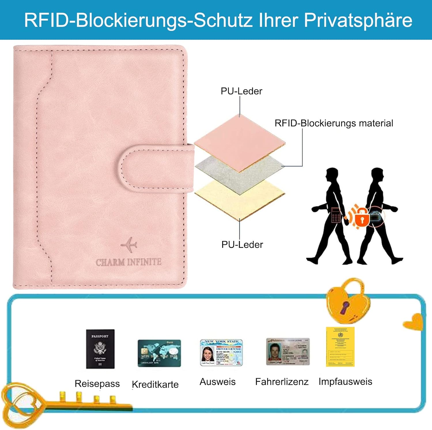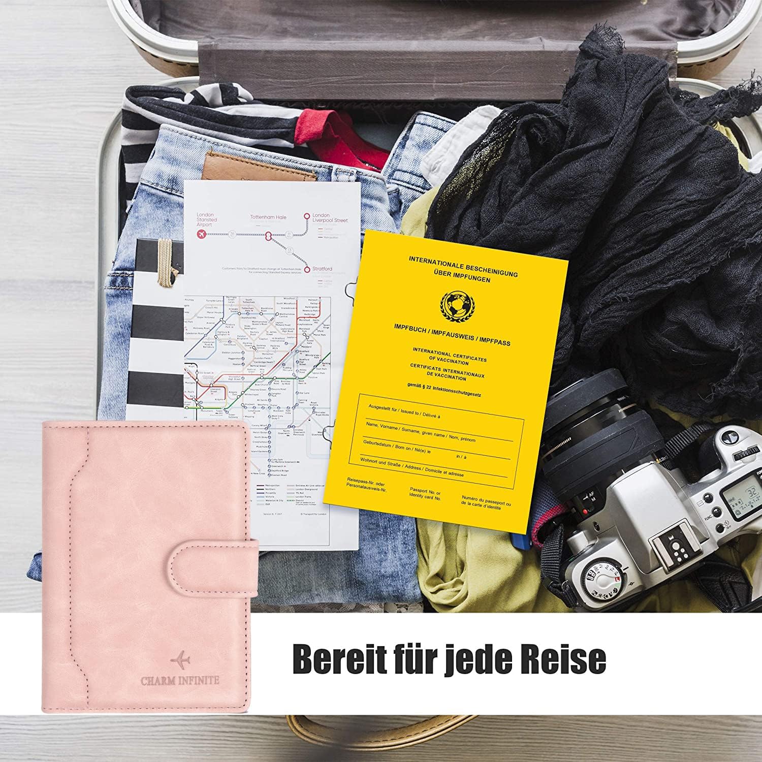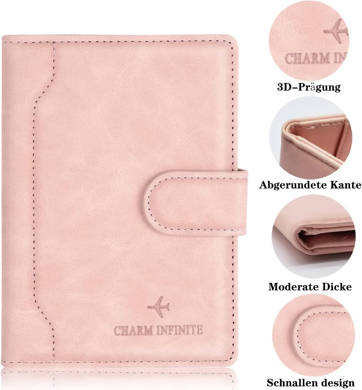 Toctax Passport Holder Cover, Leather RFID Travel Wallet Case Organiser with RFID Blocker, Passport Cover for Passport, Business Cards, Credit Cards, Boarding Passes (Pink)