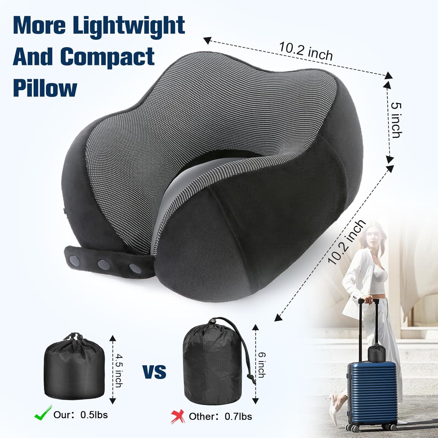 Travel Pillow for Airplane, Neck Pillow for Travel, Memory Foam Travel Neck Pillow for Adults, Adjustable & Compact Flight Pillow, Ergonomic Neck Cushion, With Ear Plugs, Eye Mask, Carry Bag